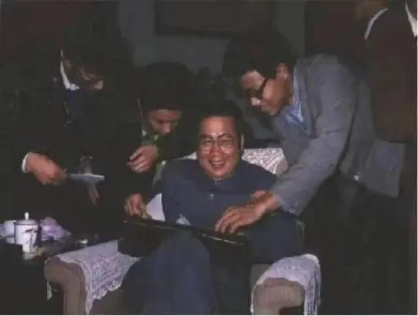 李鹏总理与青年学生座谈后,为大学生签名留念