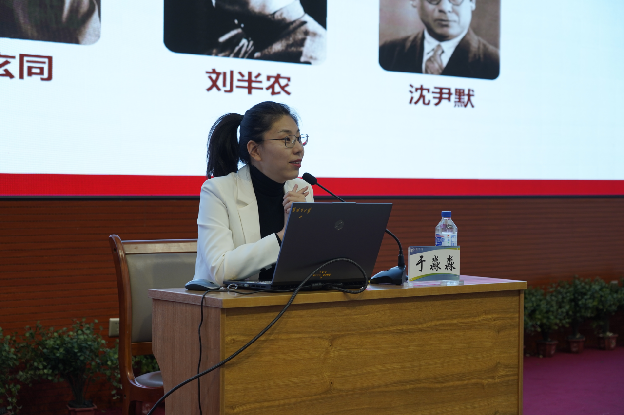 马克思主义学院教师于淼淼作《追寻光辉足迹,担当时代重任》专题报告,她从新文化运动、五四运动、马克思主义进一步传播与中国共产党诞生、中国革命的新格局、大学生应担当时代重任等方面为学生授课。