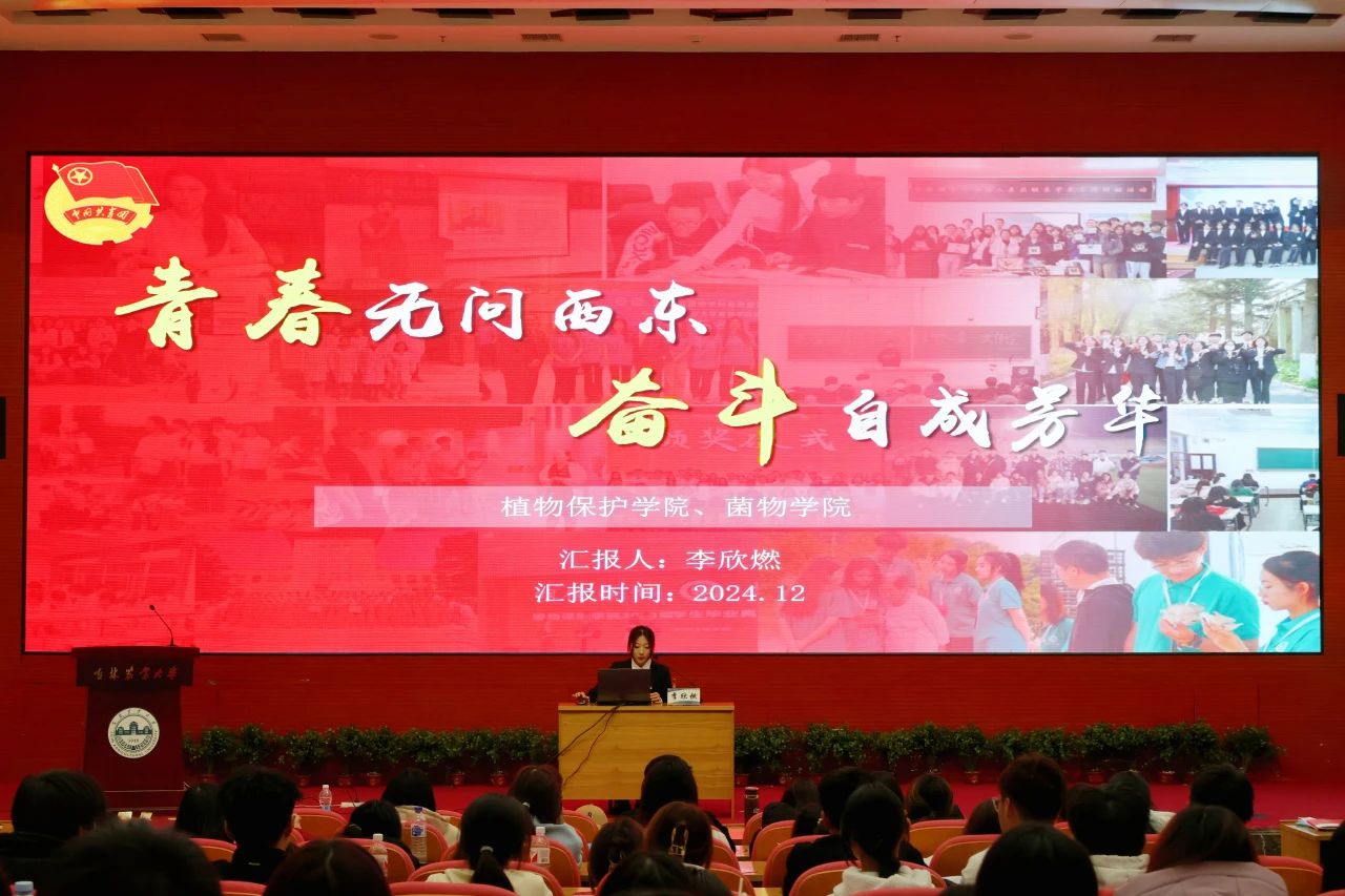 植物保护学院、菌物学院2022级植物保护专业5班团支部书记李欣燃作题为《青春无问西东,奋斗自成芳华》团支部工作经验分享。