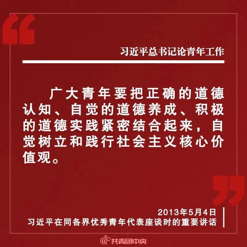 2013年5月4日,习近平总书记在同各界优秀青年代表座谈时强调:“广大青年要把正确的道德认知、自觉的道德养成、积极的道德实践紧密结合起来,自觉树立和践行社会主义核心价值观,带头倡导良好社会风气。”