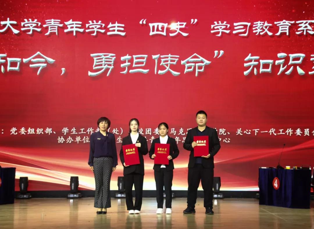 为深入学习贯彻习近平总书记在党史学习教育动员大会上的重要讲话精神,推动全校青年学生进一步学好党史、新中国史、改革开放史、社会主义发展史,引领青年学生感悟马克思主义的真理力量,持续激发广大师生爱党爱国爱社会主义的巨大热情,6月4日,学校在鲲鹏学生文化活动中心举办了吉林农业大学青年学生“四史”学习教育系列活动——“鉴往知今·勇担使命”知识竞赛决赛。学校党委书记席岫峰,党委副书记毛彦军出席了本次活动。学校党委组织部、学生工作部(处)、校团委、马克思主义学院和关心下一代工作委员会等主办单位负责人,各学院师生近300人参加了活动。