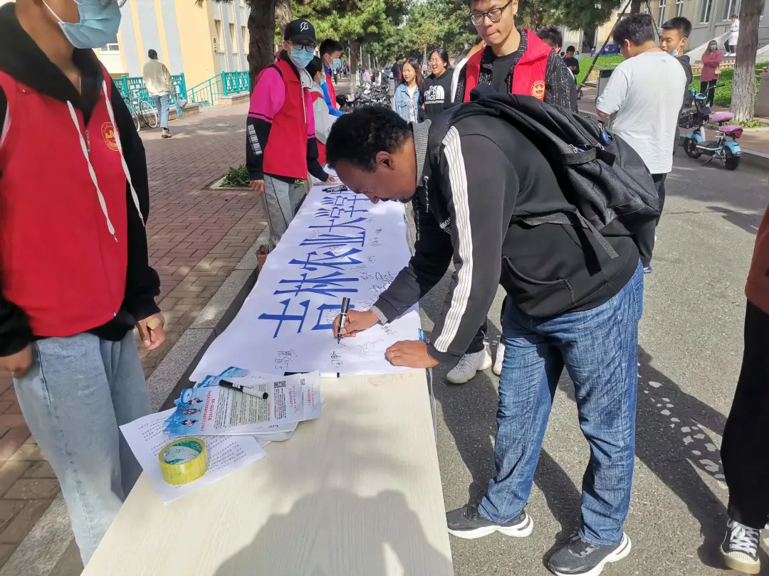 。学校留学生同学也参与了本次反电信诈骗宣传活动中,认真学习了宣讲员普及的反诈骗知识,同学们学习过后都表示受益匪浅,并在条幅上签字。