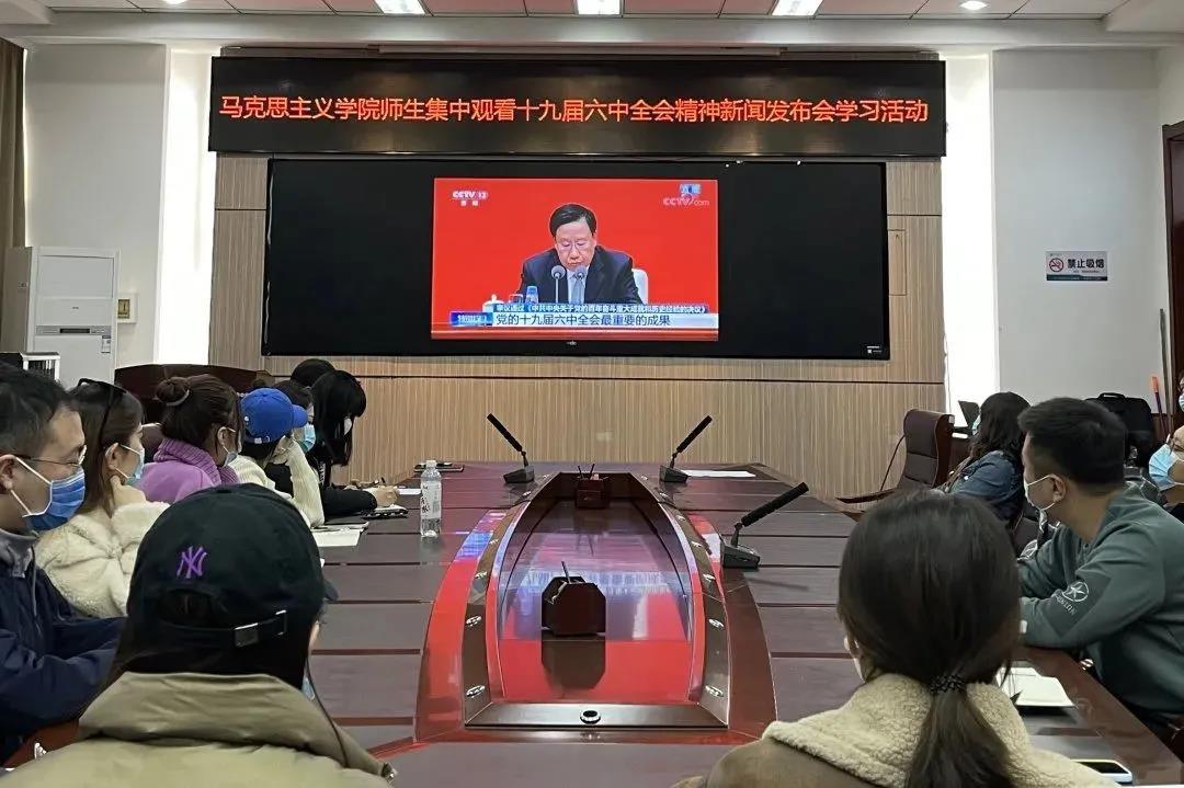 马克思主义学院团委组织学院全体学生利用课余时间学习十九届六中全会精神,力争做到先学一步、多学一点、深学一层。通过学习,同学们纷纷表示,要全面贯彻习近平新时代中国特色社会主义思想,大力弘扬伟大建党精神,努力学习专业本领,为实现第二个百年奋斗目标,实现中华民族伟大复兴的中国梦而不懈奋斗!