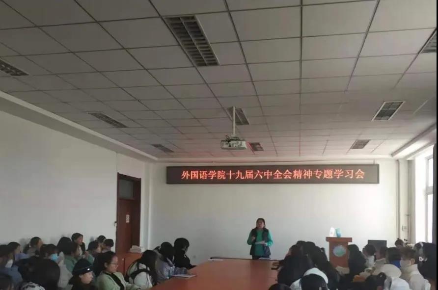 十九届六中全会召开后,外国语学院团委第一时间组织全院团支部开展了以“学习党的十九届六中全会精神”为主题的团日活动。通过团日活动,旨在引导同学们提高政治站位,牢记初心使命,练就过硬本领,努力成为堪当民族复兴大任的时代新人。