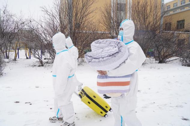 帮助解除隔离同学搬运行李