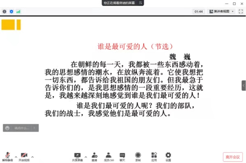 同学们在观看完电视剧后,通过组织召开线上团支部大会的方式,对“抗美援朝精神”进行了深入的学习和探讨,并结合目前的疫情防控形势,对如何将“抗美援朝精神”与“抗疫精神”相结合纷纷发表了自己的见解。