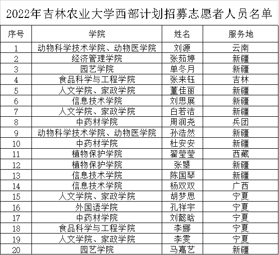 吉林农业大学20名同学入选2022年大学生志愿服务西部计划