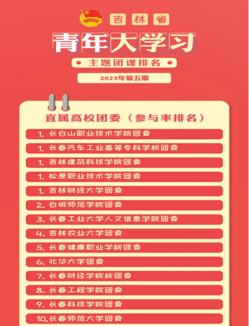 吉林省“青年大学习”网上主题团课2023年第五期直属高校前十名