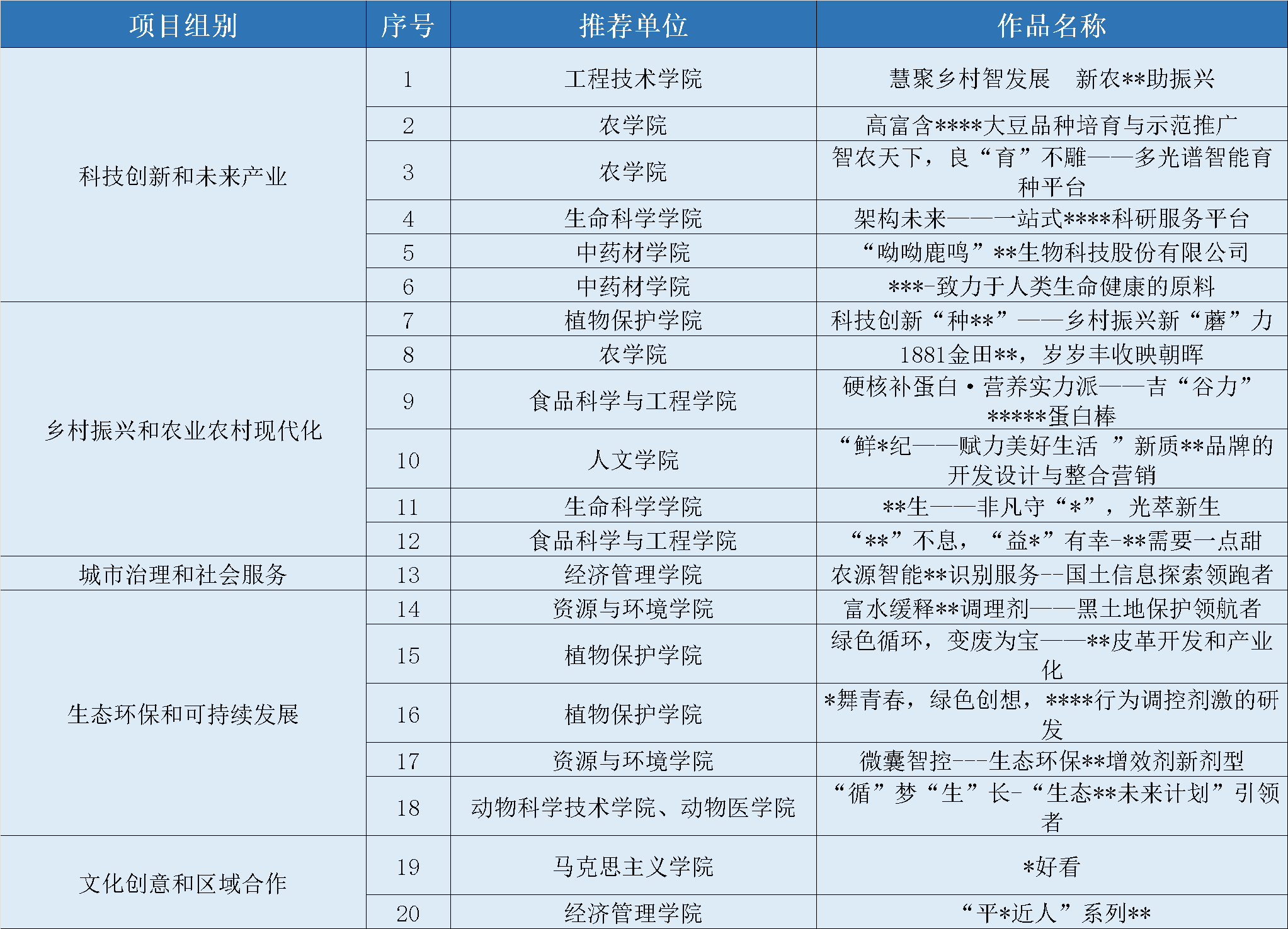 根据专家评审结果,最终推荐参加2024年“挑战杯”吉林省大学生创业计划竞赛项目共有20个,具体名单如下: