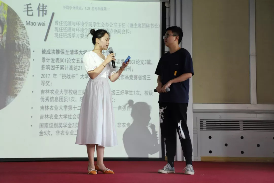 活动中,在“挑战杯”吉林省大学生课外学术科技作品大赛中获得二等奖及以上的八支团队进行了精彩的项目路演,向在校学生以及优质生源基地的部分教师和学生代表展示了吉农学子的科研业绩和学术水平。在路演过程中,采访了三位项目负责人,分别为资源与环境学院毛伟、食品科学与工程学院刘伟、研究生院李晨曦,他们分别结合被成功报送至清华大学攻读硕士学位的求学历程、参与创新创业活动的成长经历和研究生支教生涯的感受体悟,向同学们分享了宝贵经验和心路历程。