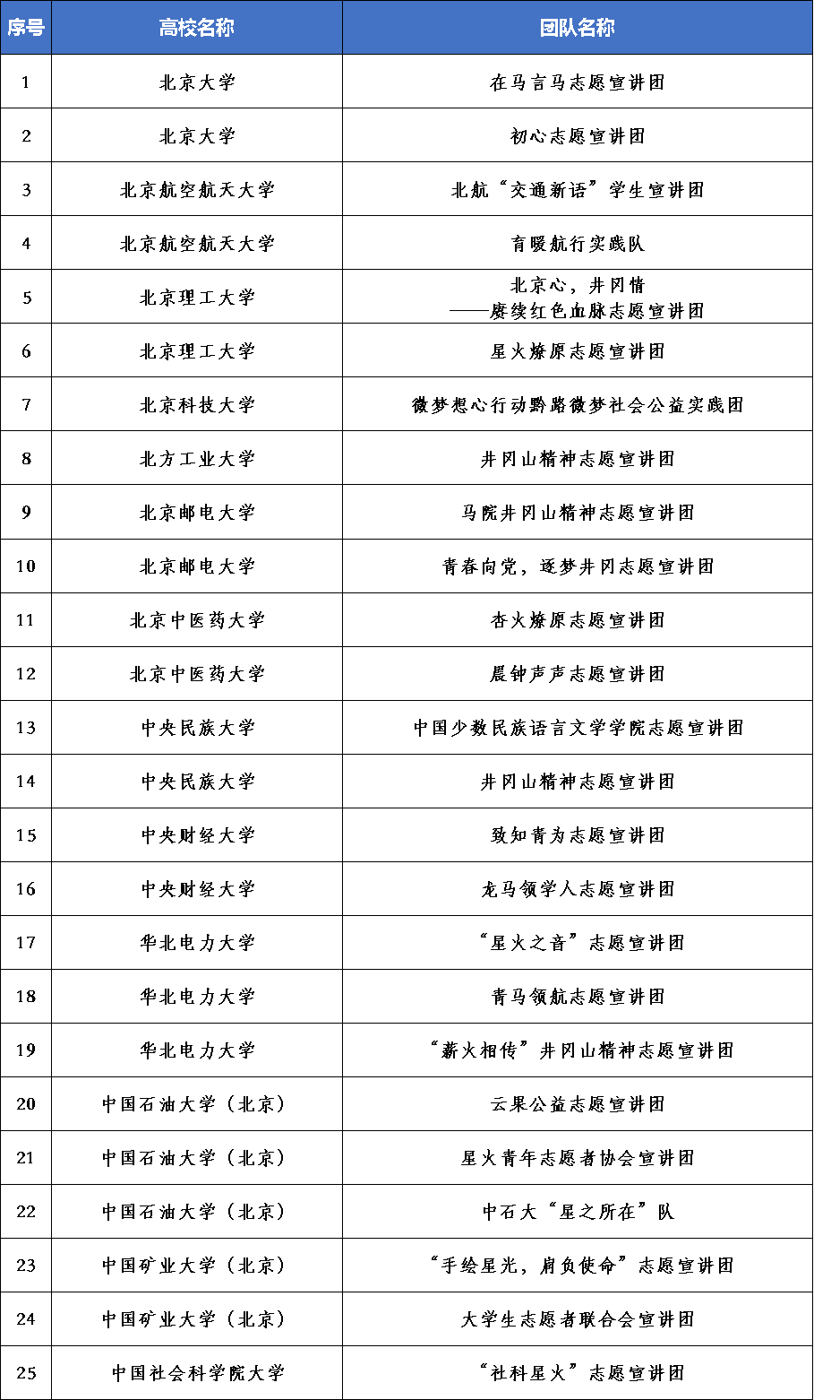 2023年全国大学生井冈山精神志愿宣讲团入选团队名单(排名不分先后)
