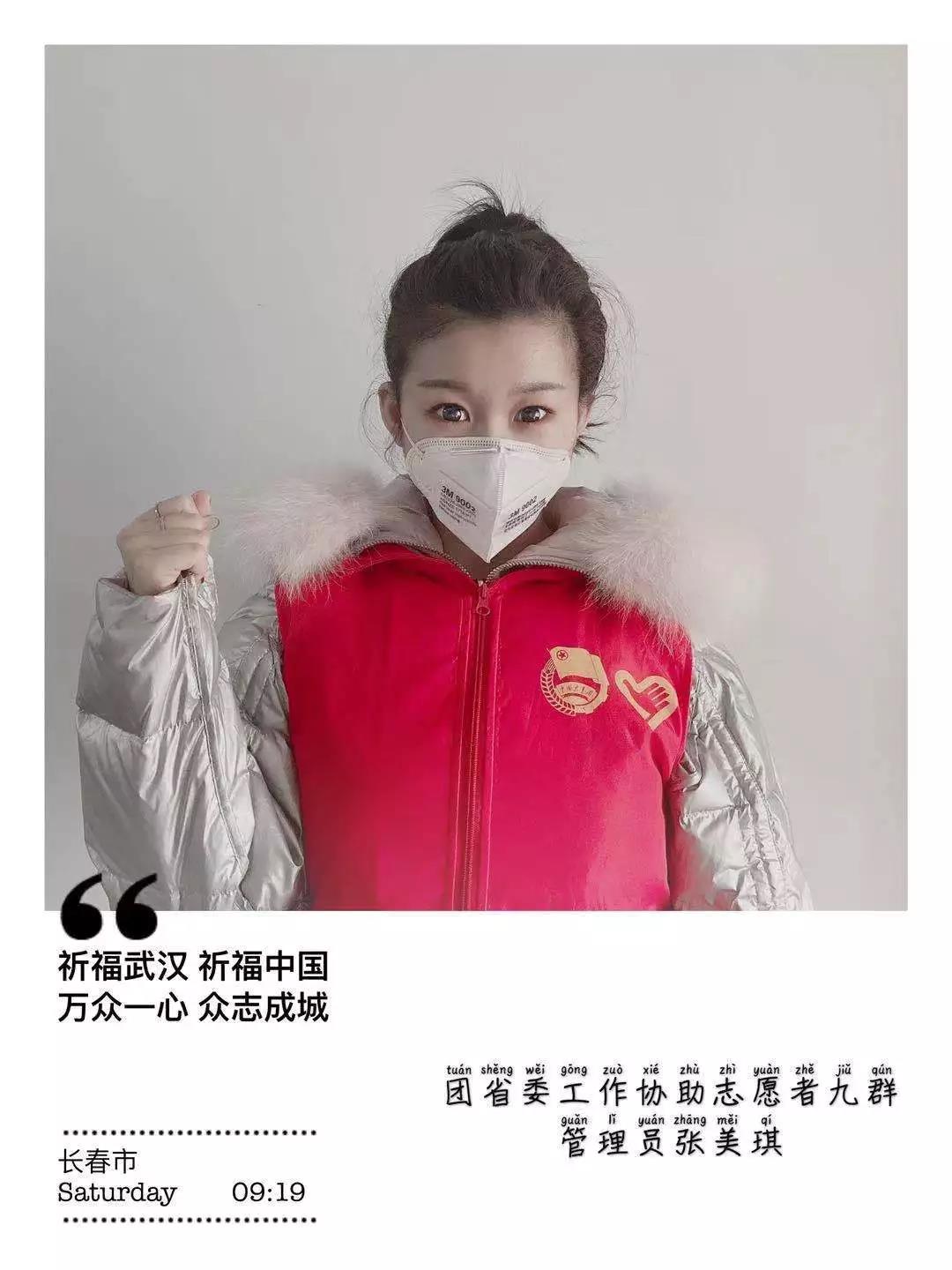 “我是一名共产党员,我在宣誓的时候说无论何时何处,只要祖国需要我,我都要冲到最前线去。本次,我担任的是团省委工作协作志愿者9群的总管理,主要负责志愿者的管理、任务分配和线上宣传等工作。在这个全国众志成城、万众一心,共同遏制病情的关键时刻,我一定和吉林省所有的青年志愿者拧成一股绳,力往一处使,争取早日能够战胜病毒。吉林加油!武汉加油!中国加油!” 经济管理学院志愿者研究生张美琪坚定地说。