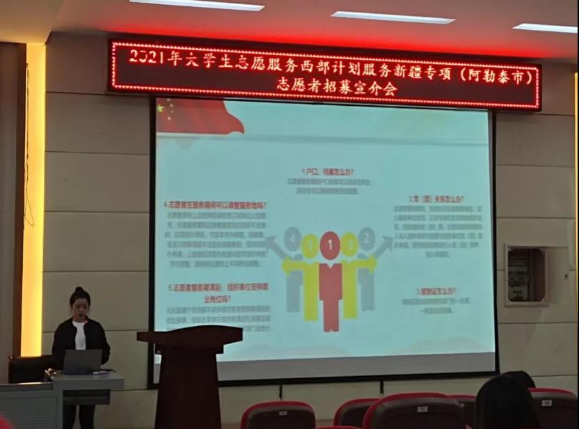在随后的现场答疑环节,在场同学踊跃提问,阿婷婷·阿勒泰和祝丹丹耐心地为他们答疑解惑,同时也提供了共青团阿勒泰市委员会公众号、新疆西部计划项目办工作人员微信等多种途径,帮助同学们在会后进一步了解新疆西部计划项目