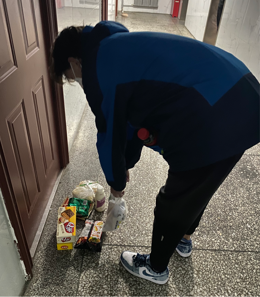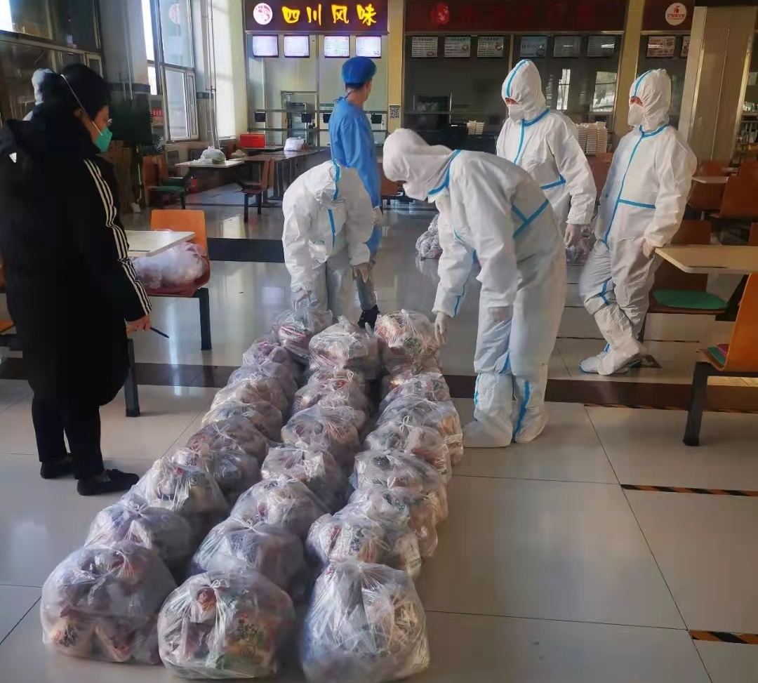 为了在校园内更好的构建起保障学生安全的防疫屏障,学校迅速采取了科学有效的静态管控措施,在此状态下,全校学生一日三餐和生活物资运送的艰巨任务,便成了“青马”突击队义不容辞的责任。突击队成员们与食堂管理人员配合默契,大家无惧风雪、争分夺秒的将的物资和餐食运送到各个公寓,以保证在寝室的同学们都能按时吃上饭。