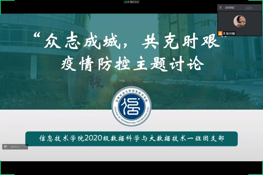 在疫情防控常态化时期,为了更好的引导我校青年学生加强思想教育,正确认识新冠肺炎疫情形势,提高思想认识、增强防护意识,团结一心、众志成城,学校“青马”学员充分发挥自身理论优势和引领作用,通过组织同学们开展线上团支部活动和团课的形式,带领同学们学习防疫知识、分享心得体会、丰富课余生活。