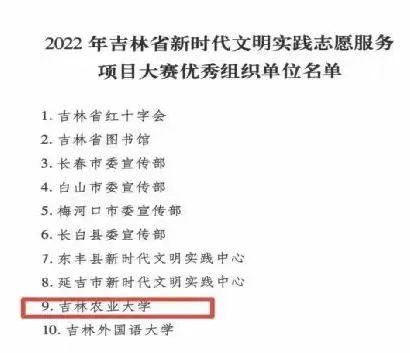 为深入学习贯彻习近平新时代中国特色社会主义思想和党的二十大精神,推动志愿服务高质量发展,2022年10月至2023年2月,吉林省文明办委托吉林省志愿服务联合会、搜狐吉林融媒体中心,举办2022年吉林省新时代文明实践志愿服务项目大赛。我校积极组织参与本次比赛。