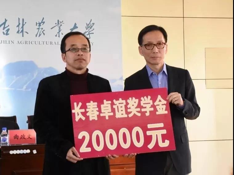 颁奖仪式上,学校党委副书记毛彦军代表学校接受企业奖学金捐赠;学校教育基金会理事长曲政文、招生就业处处长赵明家、校团委书记彭雨石分别与长春卓谊生物股份有限公司签署了奖学金捐赠、1+N企业家进课堂、大学生社会实践协议。最后,与会领导为获得长春卓谊企业奖学金的10名优秀学生颁奖。