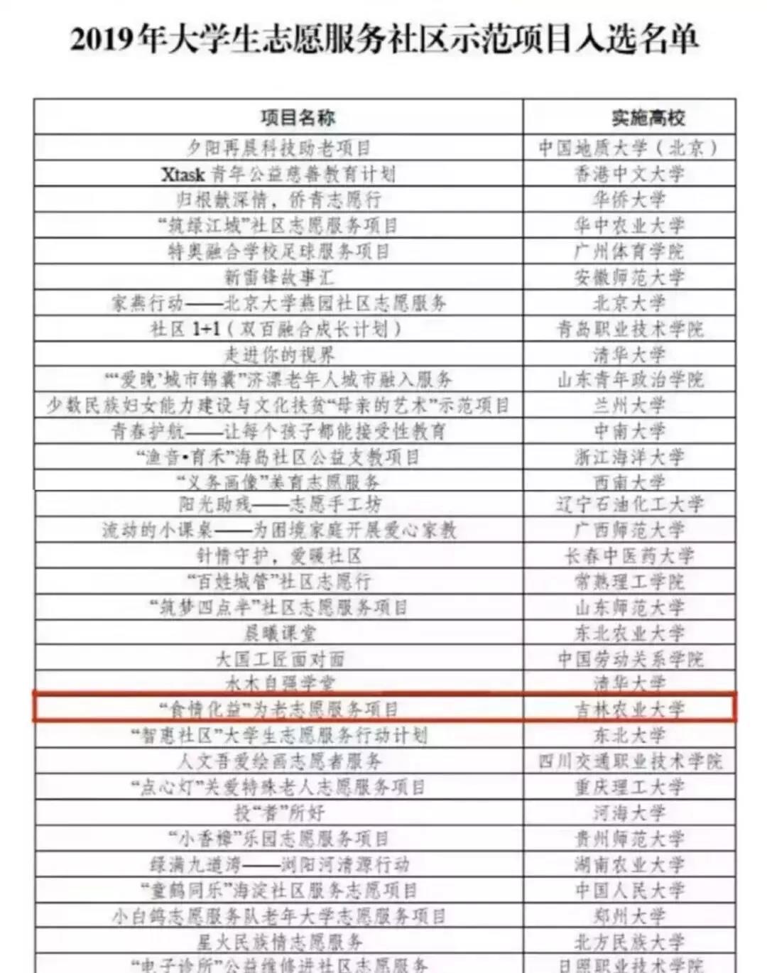 据悉,本次活动吉林省共有三所高校四个项目入选,食品科学与工程学院“食情化益”为老志愿服务项目曾获得第四届中国青年志愿服务项目大赛银奖。