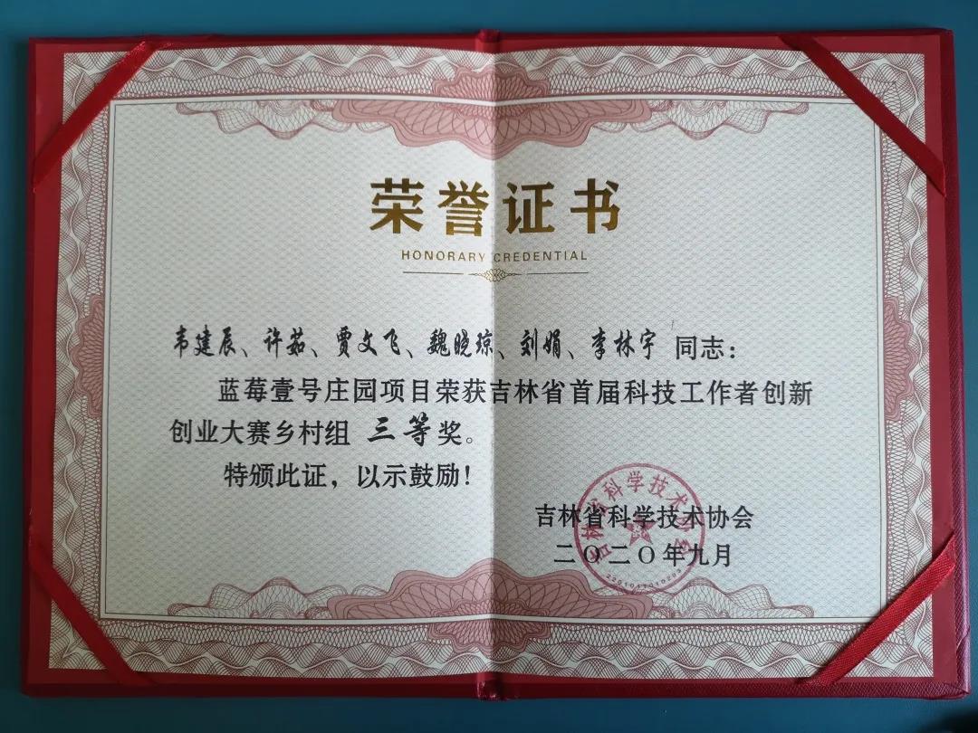 近日,吉林省首届科技工作者创新创业大赛决赛在长春成功举行。在此次大赛中,园艺学院吴林主持的“蓝莓品种创新及全产业链技术标准化”项目获得成长组二等奖,韦建辰主持的“蓝莓壹号庄园”项目获得乡村组三等奖的好成绩。