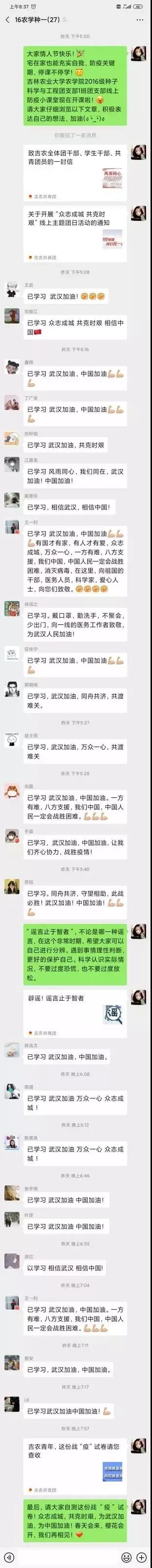 2020年初,一场突如其来的新型冠状病毒感染的肺炎疫情打破了庚子鼠年的平静。在疫情中,有许多不顾个人安危直面病毒的“逆行者”,他们是人们心中的英雄。面对疫情我们团结一心,共同努力,为防控疫情贡献力量。为响应校团委《关于开展“众志成城,共克时艰”线上主题团日活动的通知》的精神,农学院各团支部积极开展“众志成城 共克时艰”线上主题团日活动。