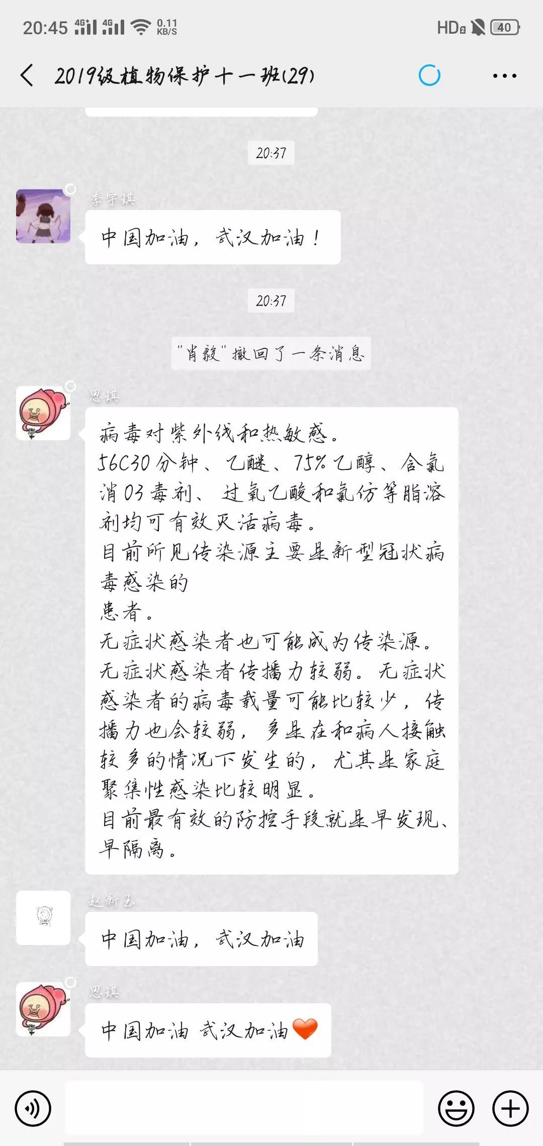 为充分发挥团员青年生力军和突击队的作用,提高团员青年对新型冠状病毒的防范意识,坚定对战胜新型冠状病毒的信心与决心,为坚决打赢疫情防控阻击战贡献力量,植物保护学院组织开展了 “众志成城 共克时艰”线上主题团日活动。