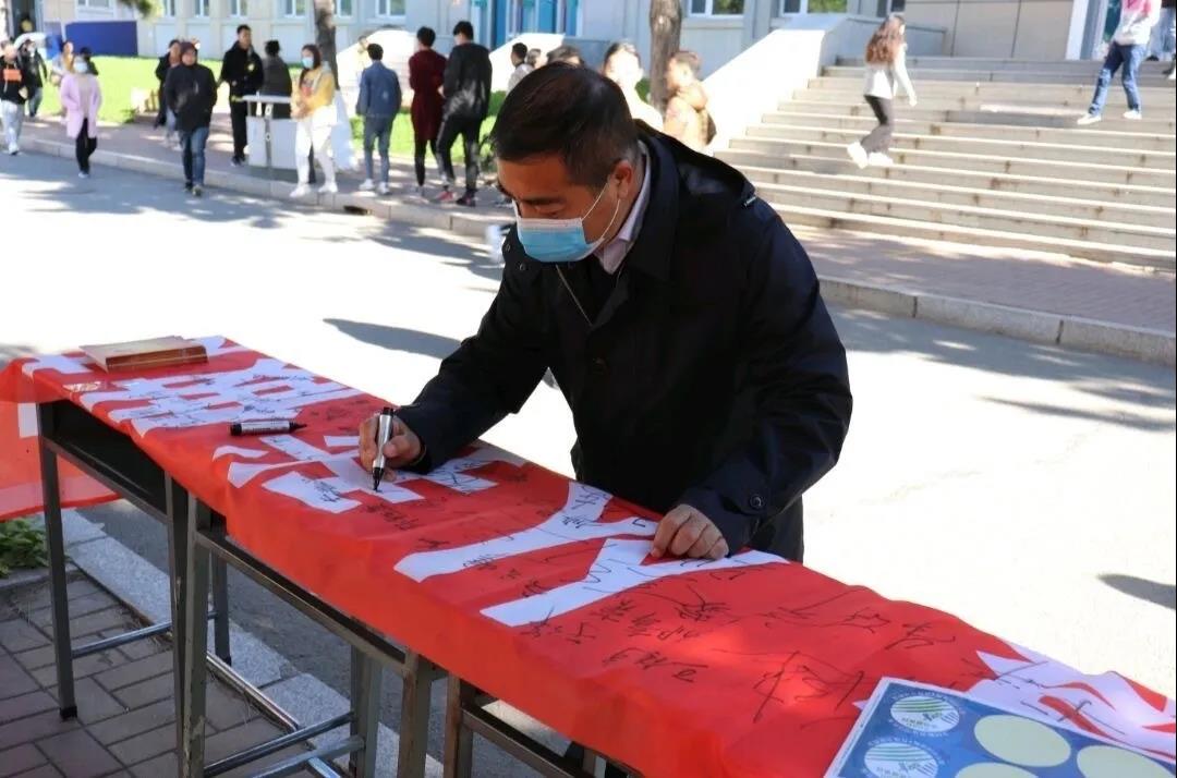 在学校第三食堂门口举办“青春抗疫 爱国力行 节约粮食 从我做起”签名活动,号召全校师生节约粮食尽在生活日常。