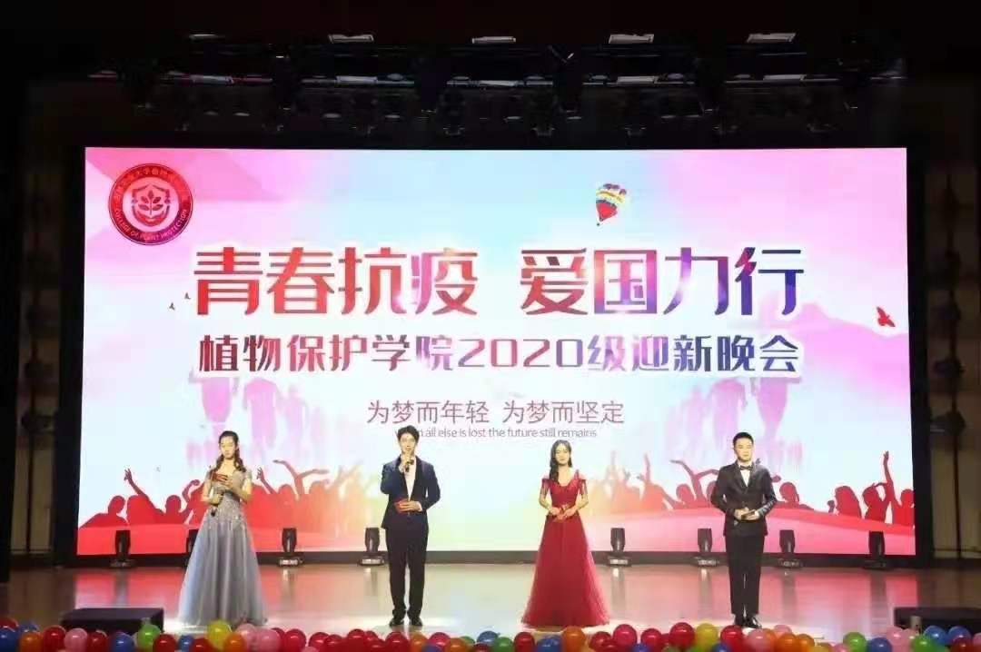 11月6日,植物保护学院于鲲鹏学生文化活动中心举行了2020年“青春抗疫 爱国力行”迎新生晚会。学院党委书记阮长春,副院长袁海滨、陈长卿,党委副书记佟鑫,院长助理高宇,学院办公室主任王志,各教研室专业教师代表,学院团委书记尚妍妍,学生工作办公室全体教师,各学院辅导办学生工作人员,兄弟学院学生会,大学生自律委员会主席团成员以及2020级全体新生一同观看了本场晚会。
