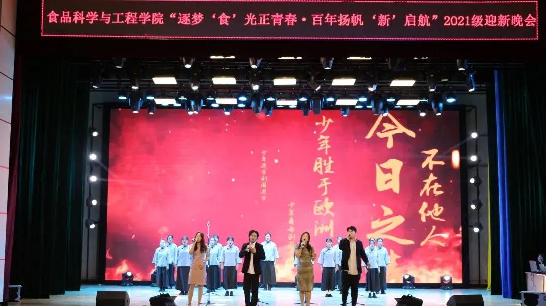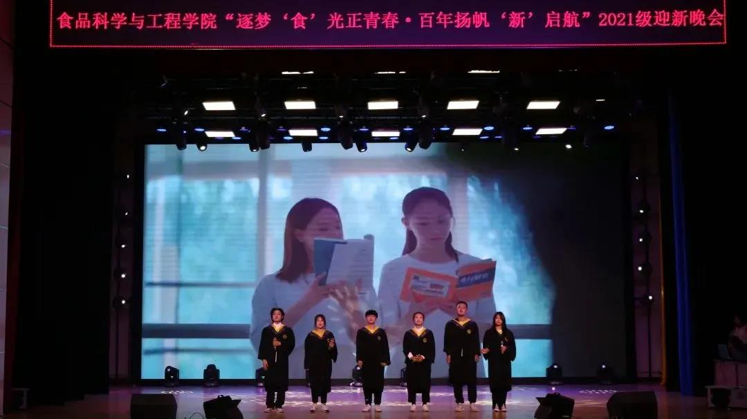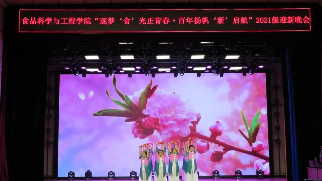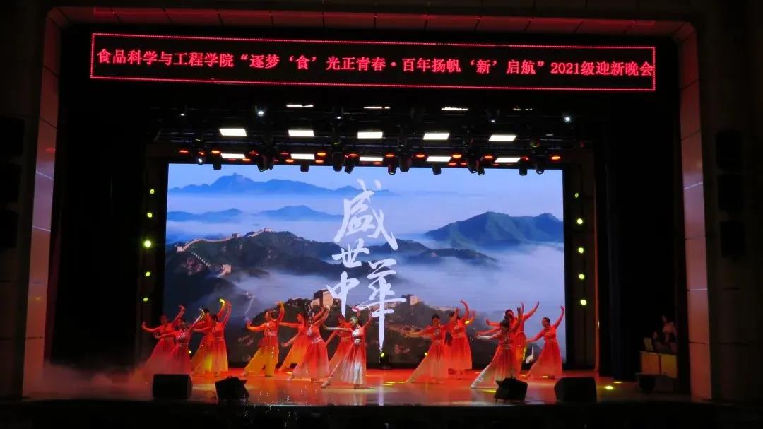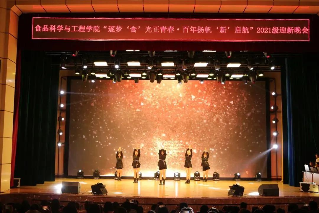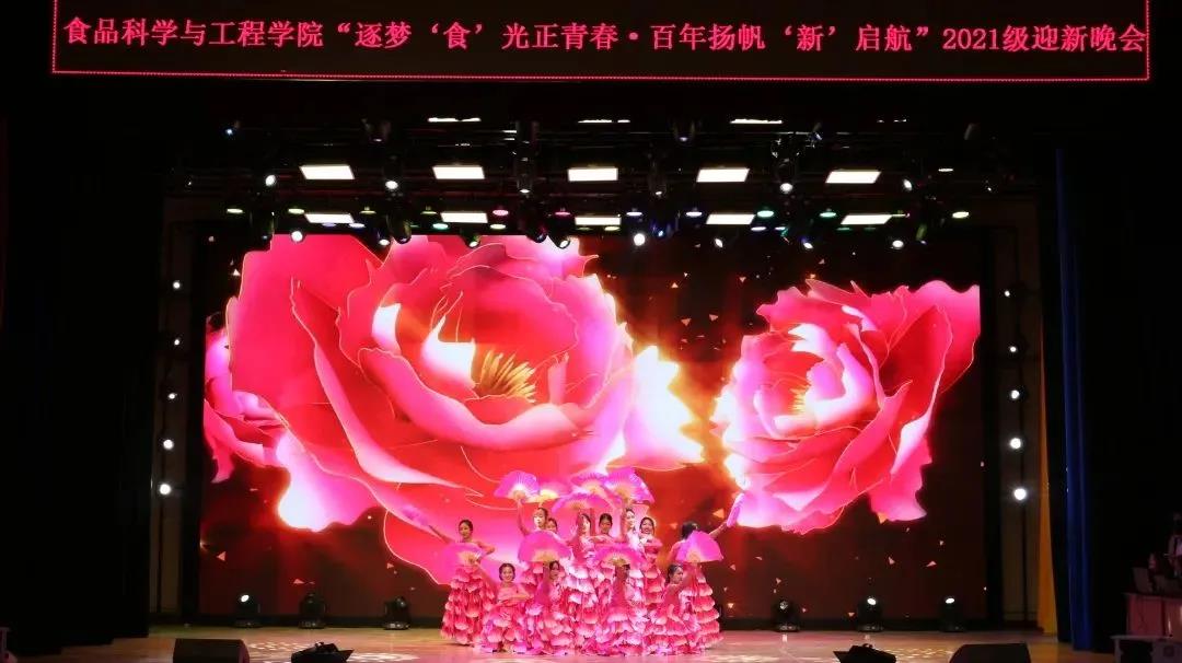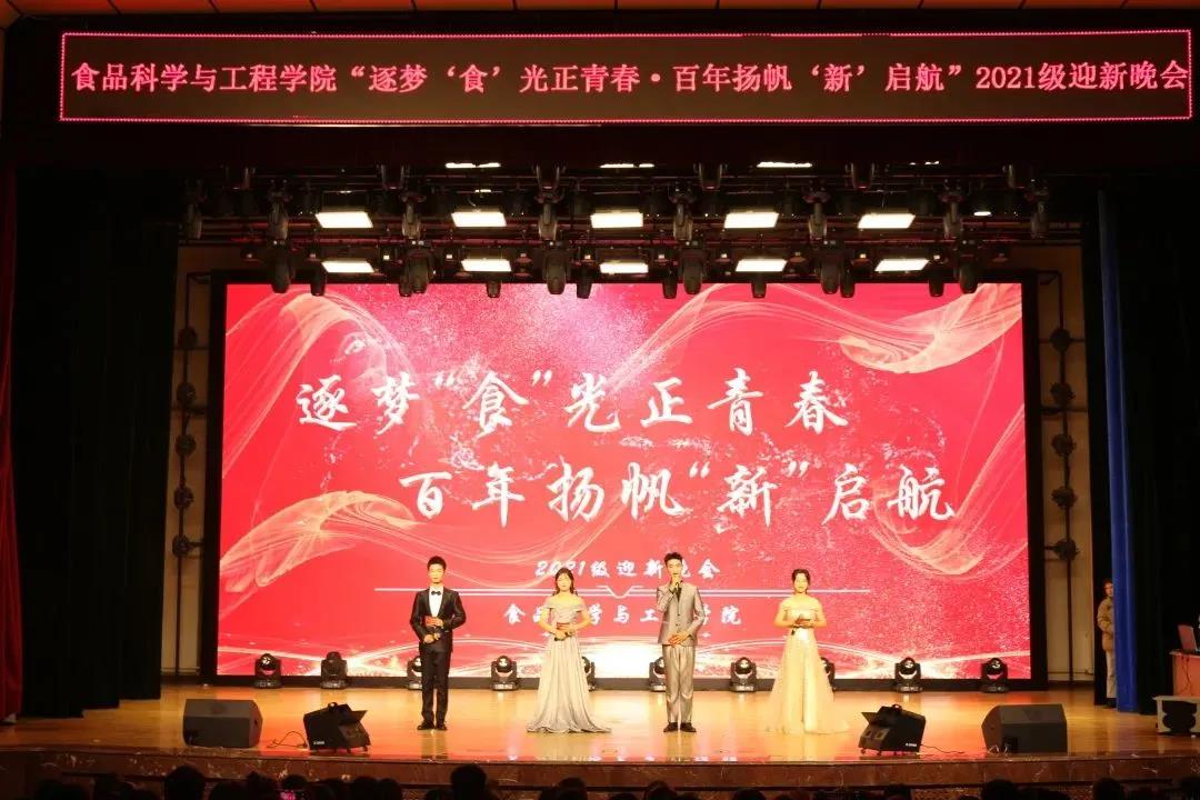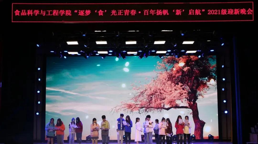 2021年10月22日,食品科学与工程学院“逐梦‘食’光正青春·百年扬帆‘新’启航”文艺汇演暨2021级迎新晚会在鲲鹏学生文化活动中心举行。学院党委书记王志江、院长闵伟红、副院长郑明珠、党委副书记祭学明,研究生兼职辅导员刘美宏以及学生工作办公室全体老师出席了本场晚会。