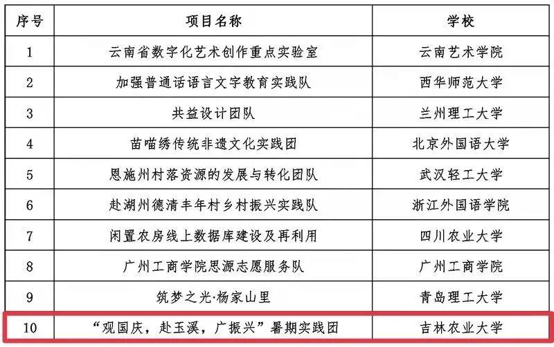 为深入贯彻落实习近平总书记关于青年工作的重要思想,鼓励广大青年积极投身到助力乡村振兴的实践中,吉林农业大学植物保护学院学子积极响应活动号召,广泛投身社会实践。通过层层选拔,植物保护学院“观国情,赴玉溪,广振兴”暑期实践团队,成功入选为被资助团队,并从全国596支团队中脱颖而出,荣获“SK SUNNY乡村振兴幸福行动”公益项目的“十佳团队”称号。