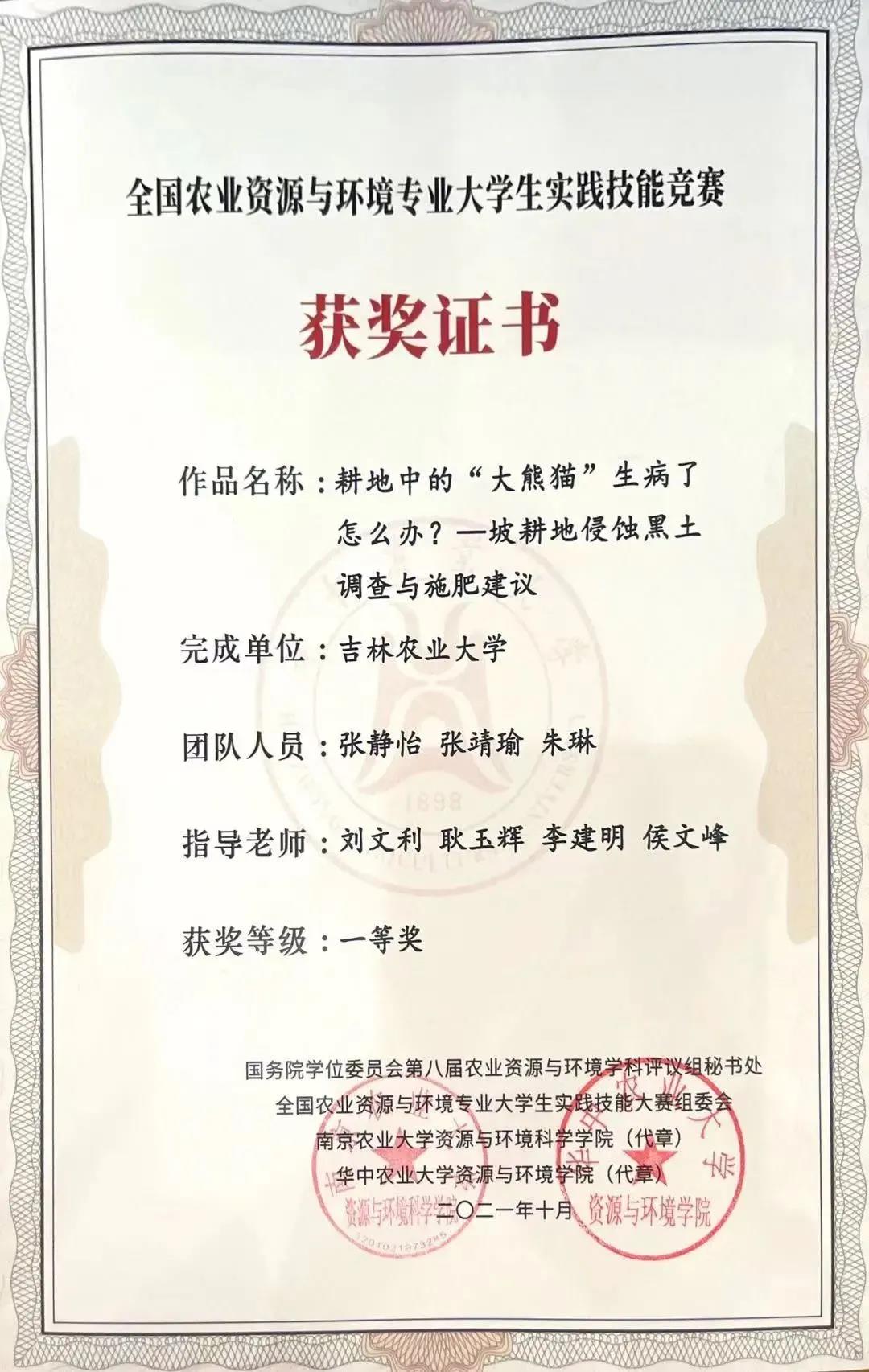 2021年7月,“全国首届农业资源与环境专业大学生实践技能竞赛”在华中农业大学举办,我校资源与环境学院的参赛项目“耕地中的‘大熊猫’生病了怎么办?——坡耕地侵蚀黑土调查与施肥建议”在本次比赛中荣获一等奖。