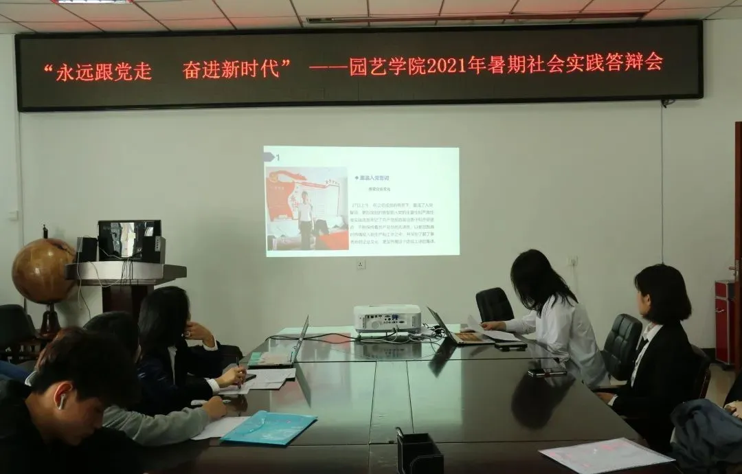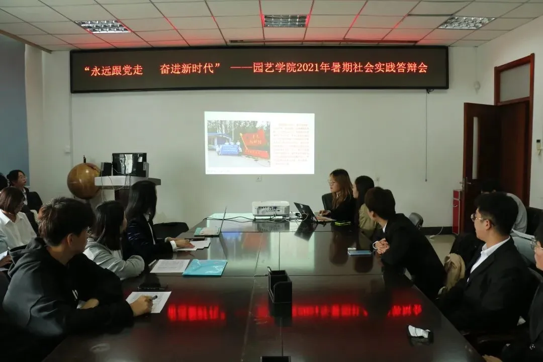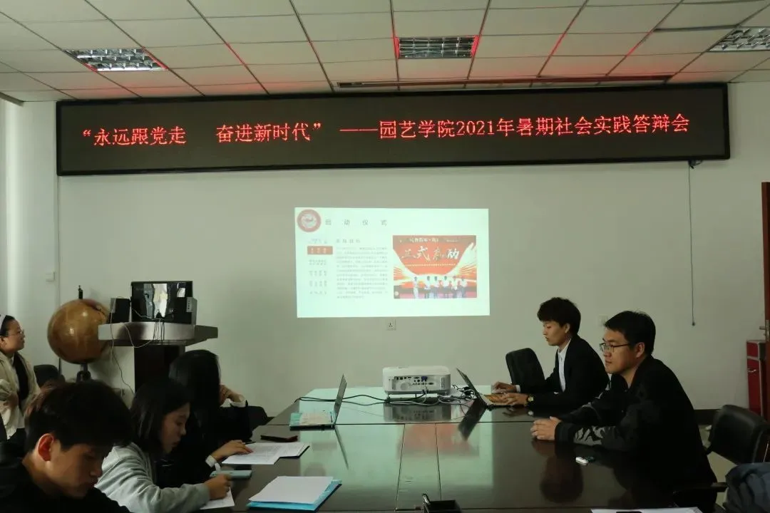 2021年9月30日,园艺学院在学院一部二楼会议室举行了2021年大学生志愿者“永远跟党走 奋进新时代”暑期社会实践答辩会。本次答辩会评委由园艺学院党委副书记王中华、团委书记马赛、2020级辅导员高雪及部分学生会成员担任,45位团队和个人社会实践代表参加了此次社会实践答辩会。