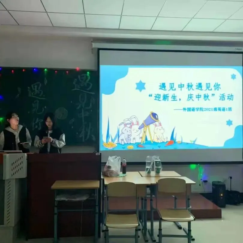 2021年9月21日晚17:30,金红落地,夕阳铺天,外国语学院在文科楼三楼专业教室举办了“遇见中秋遇见你——迎新生,庆中秋”活动。