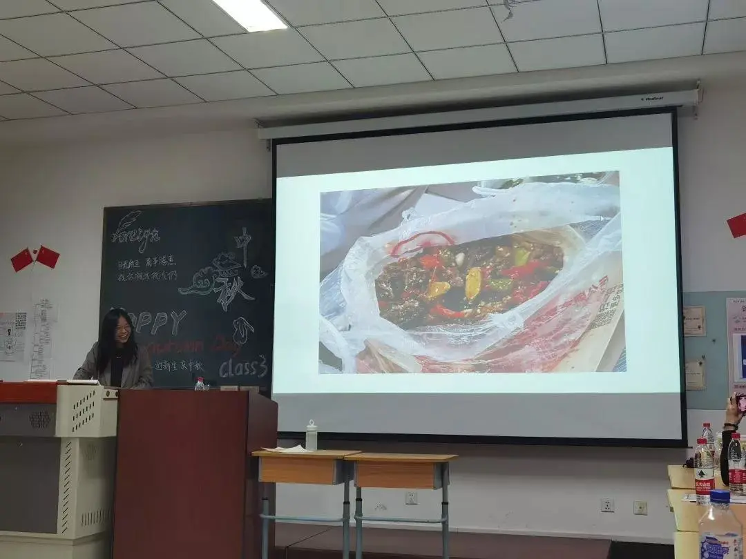 活动中,萌新们以图片或是口头讲述的方式向同学们展示自己家乡的中秋地道美食。