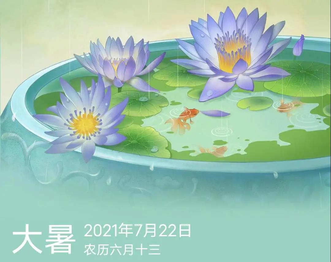 大暑是二十四节气中的第十二个节气,是夏季最后一个节气,公历7月22--24日交节。“大”极致,“暑”是炎热的意思,大暑,指炎热之极,正值“三伏天”里的“中伏”前后,是一年中最热的时段。“湿热交蒸”在此时到达顶点,注意防汛防涝。