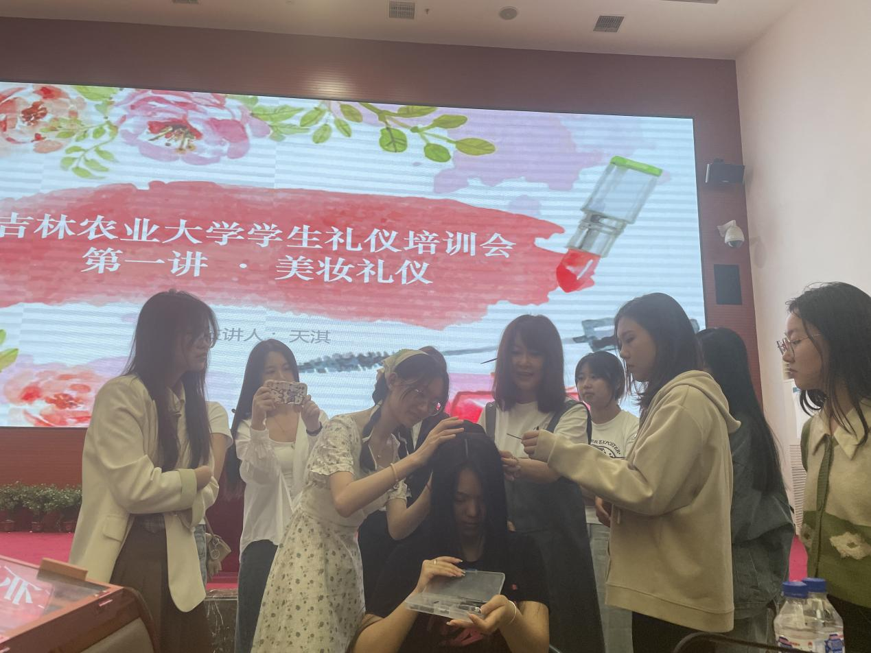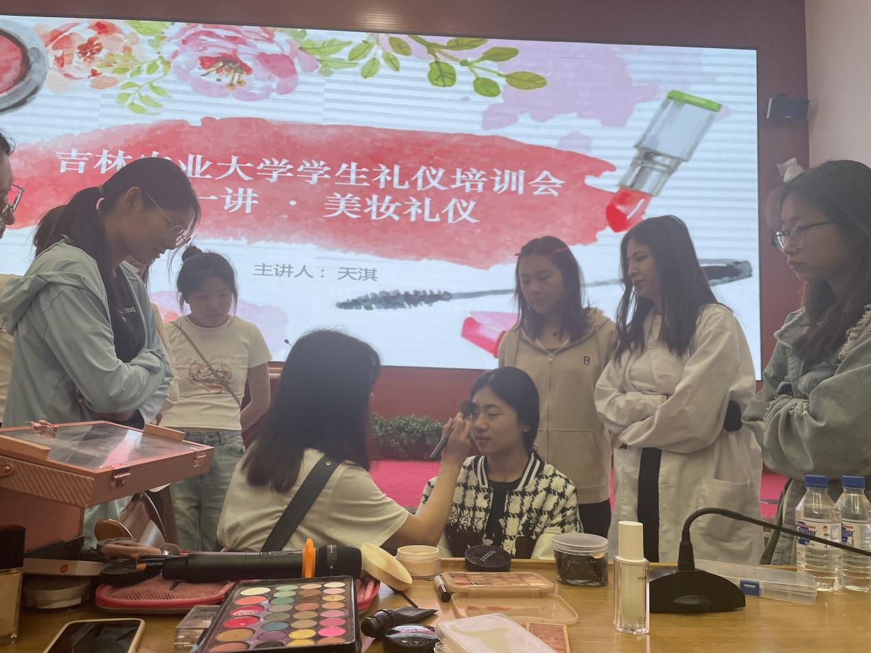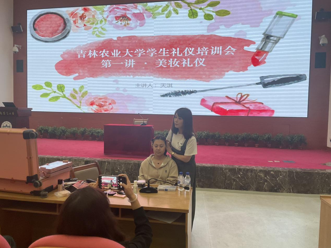 为提高我校青年学生的文明礼仪素养,展示良好的精神风貌,帮助学生打造良好的个人形象,5月8日,校团委在图书馆报告厅举办大学生礼仪素养培训会第一讲美妆礼仪培训。活动邀请到长春职业技术学校美妆教师姜天淇,为同学们带来精彩的美妆教学内容,从实际技能提升的角度,助力同学们的未来发展。