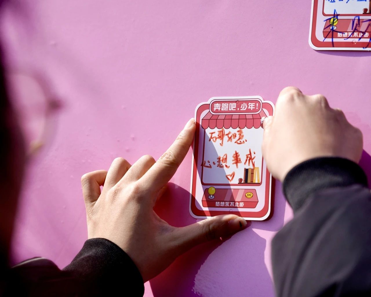 一面心形墙,承载了无数心声;一张贺卡纸,写满了真挚祝福。在这里,每一笔都是情感的流淌,每一句都是心灵的共鸣,所有的言语汇聚成一片温暖的海洋,让暖意在校园的春风中轻轻荡漾。
